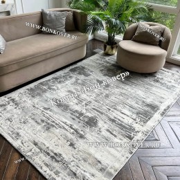 Красивый Современный Турецкий Ковер Дизайн 188 Серый с Белым Овал наполняет интерьер гостиной теплом и уютом, гармонично сочетает в себе изящество и красоту. Он соткан из экологически чистого сырья, комфортный и долговечный.