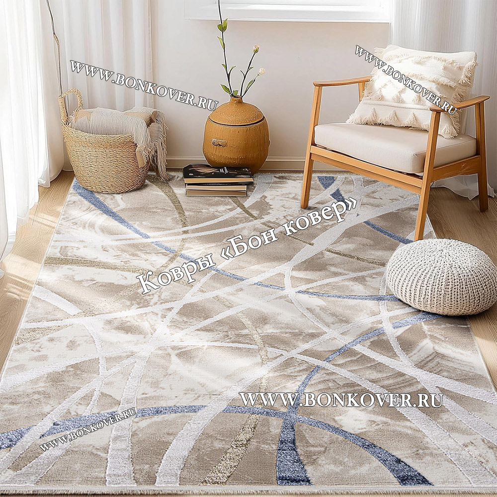 Шикарный Турецкий Ковер Для Гостиной Абстракция Дизайн 09 наполняет интерьер помещения теплом и уютом, гармонично сочетает в себе изящество и красоту. Он соткан из экологически чистого сырья, комфортный и долговечный.
